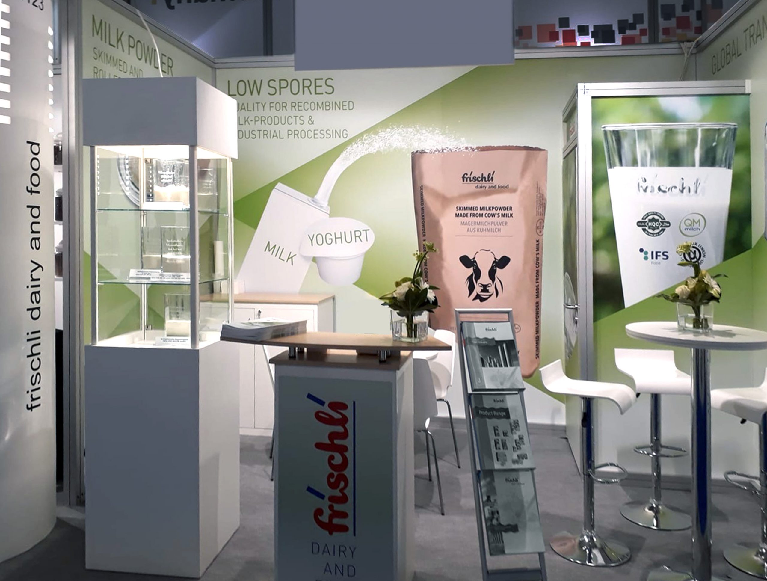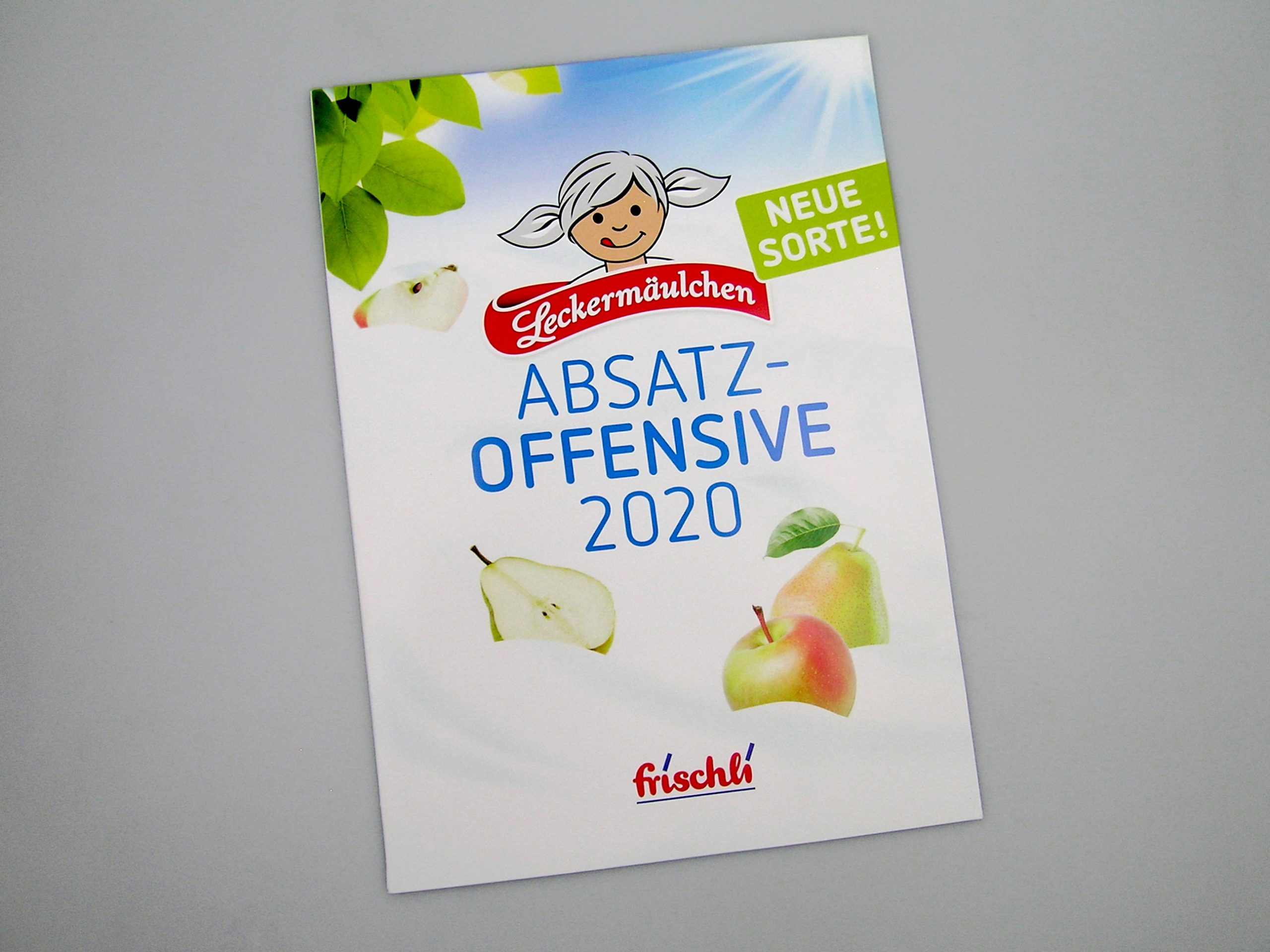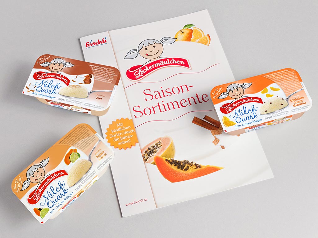 Das Marken- und Produktportfolio der Frischli Milchwerke erfordert Kommunikationsmaßnahmen sowohl im BtoB- als auch BtoC-Bereich. Entsprechend vielfältig sind die Aufgaben. Sie reichen vom Packungsdesign über Anzeigen, LKW-Branding und Regalstoppern bis zu umfangreichen Nachhaltigkeitsberichten und Wandgestaltung von Messeauftritten – Herausforderungen, die es vom Entwurf bis zur Produktionsreife umzusetzen gilt.